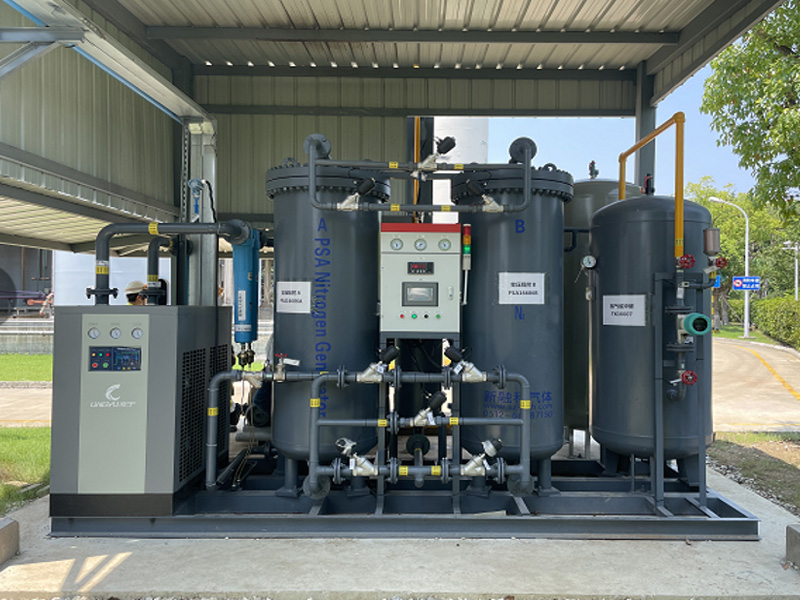 制氮機(jī)是與制氮機(jī)都是根據(jù)變壓吸附原理,采用高品質(zhì)的碳分子篩作為吸附劑,在一定的壓力下,從空氣中制取氮?dú)?。?jīng)過(guò)純化干燥的壓縮空氣,在吸附器中進(jìn)行加壓吸附、減壓脫附。由于空氣動(dòng)力學(xué)效應(yīng),氧在碳分子篩微孔中擴(kuò)散速率遠(yuǎn)大于氮,氧被碳分子篩優(yōu)先吸附,氮在氣相中被富集起來(lái),形成成品氮?dú)狻H缓蠼?jīng)減壓至常壓,吸附劑脫附所吸附的氧氣等雜質(zhì),實(shí)現(xiàn)再生。